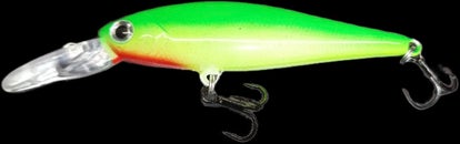 Der leuchtend-gelbe Bauch, wie auch der UV-kräftige grüne Rücken bilden das Herzstück des Wobblers. Die nicht UV-fähige rote Kehle dient als Kontrastpunkt, um dem Räuber einen Anfgriffspunkt zu liefern.