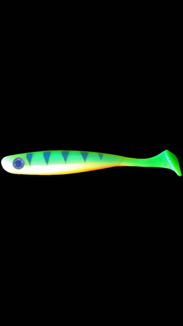 Der Feuertischer ist das ultimative Dekor für alle, die auf sichtbare Reize und aggressive Räuber setzen. Mit seinem leuchtenden Gelb-Grün, den markanten schwarzen Streifen und den feurig-orangen Akzenten am Bauch und Schwanz sorgt dieser Gummifisch für maximale Aufmerksamkeit – selbst in trübem Wasser oder bei schwachem Licht.